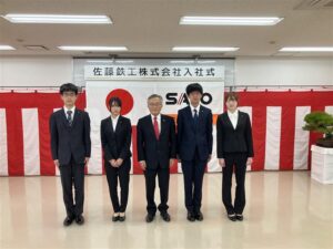 新入社員の皆さんが一日も早く、佐藤鉄工の一員として活躍することを期待しています。
