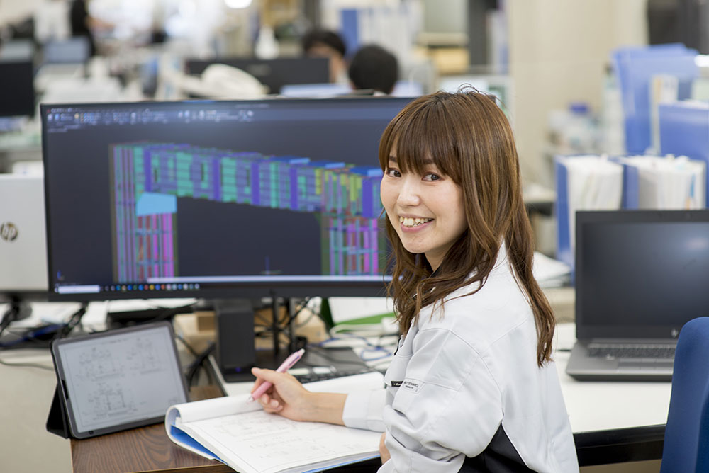 大学では機械システム工学科で、材料力学や物理を学んでいました。現在所属する技術グループでは、主に設計と製作の期間の間で、切断や組み立ての管理を行なっています。施工上の都合を設計上の観点から問題がないか検討し、問題があれば設計要領を確認しながら設計を修正しています。
