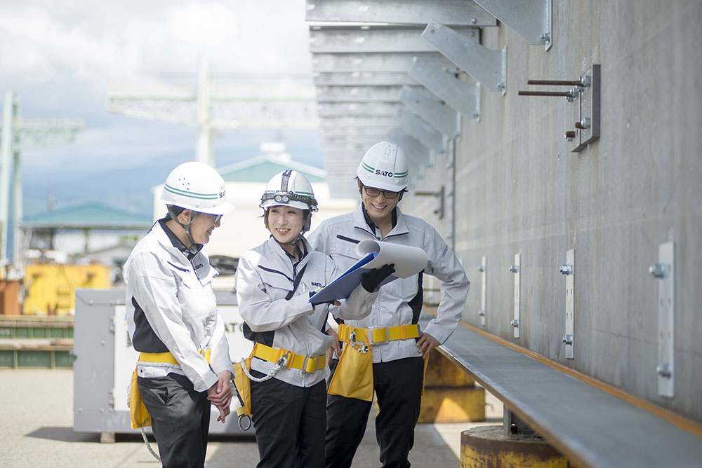 社会が必要とするニーズに応じて、私たちの役割も変わってきます。水門、橋梁、鋼構造物の加工、作り込みを軸に、これから増えていくであろう、洋上風力向けの加工物にもオランダのメーカーとタイアップして、新たなチャレンジを始めています。